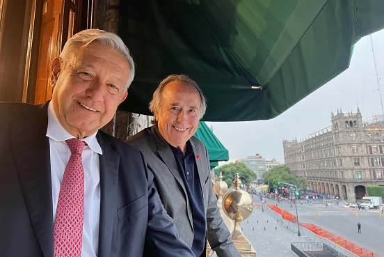 Previo a su último concierto en México, Serrat compartió con el mandatario quien a través de sus redes sociales informó: “estuvimos en el balcón principal y viendo los murales de Diego Rivera. Vio a Marx ‘que no ha muerto ni enterrado’. Si no fuera porque tengo que ir a la montaña de Guerrero, estaría en su concierto en el Zócalo, . Es poesía limpia y humana”.