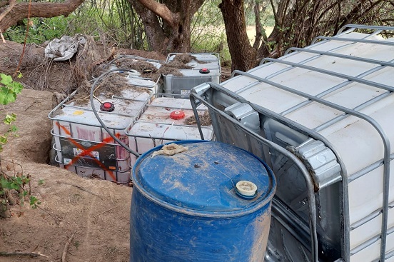 Por su parte, en el municipio de Singuilucan, en terrenos de la localidad de Tecoaco, en un espacio habilitado como “nido” o depósito de combustible, se realizaron los aseguramientos de cinco contenedores para mil litros (uno con hidrocarburo), un tambo para 200 litros abastecido y 150 metros de manguera.