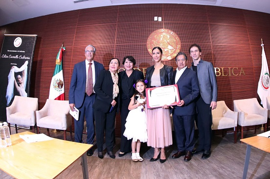 Delfina Gómez Álvarez e Higinio Martínez encabezaron el reconocimiento que la Cámara alta otorgó a la primera bailarina del Staatsballett Berlín y orgullo de México, Elisa Carrillo.