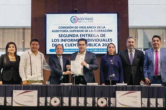 Al recibir los documentos correspondientes a la Segunda Entrega de Informes Individuales del Resultado de la Fiscalización Superior de la Cuenta Pública 2021, de manos del auditor Víctor Andrade, de la ASF, el diputado Pablo Guillermo Angulo Briceño, presidente de la Comisión, dijo que serán objeto de análisis.