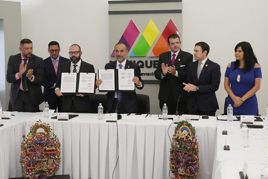 La firma de convenio marco, llevada a cabo durante la cuadragésima tercera sesión ordinaria de Cabildo con sede en las instalaciones del Sistema de Radio y Televisión Mexiquense, tiene como objetivo de promover las medidas de prevención, de protección y urgentes que garanticen la vida, integridad, seguridad y libertad de las personas que se encuentran en riesgo a consecuencia de la labor de la defensa o promoción de los derechos humanos y la actividad periodística.