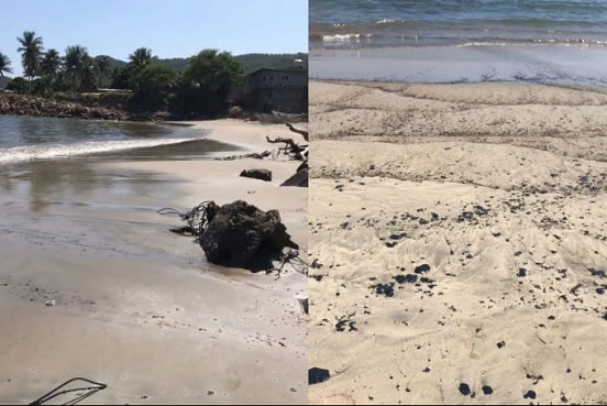 Mientras tanto, la mancha de crudo sigue cubriendo la playa a través de la corriente del mar.