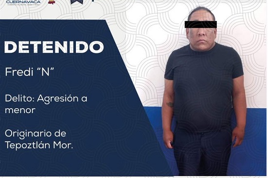 Detienen en Cuernavaca a Fredy “N” de 30 años, presunto agresor de una niña cuyo hecho se grabó y viralizó.