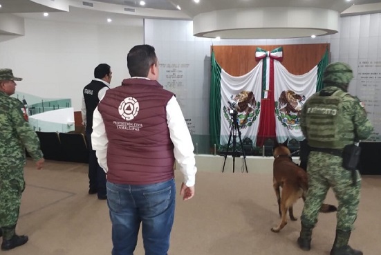 Después de varios minutos de revisión por parte de los elementos de seguridad, personal de la Secretaría de la Defensa Nacional (Sedena) llegó, alrededor de las 12:30 horas, para otra inspección del lugar.