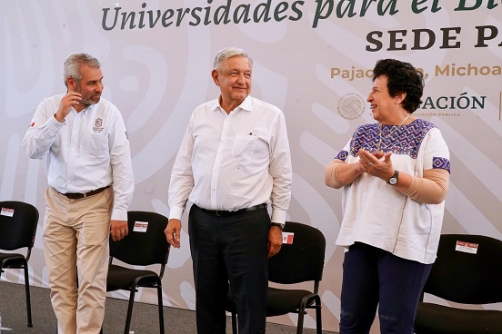 Acompañado del gobernador, Alfredo Ramírez Bedolla, y de la coordinadora del Programa de Universidades para el Bienestar, Raquel Sosa Elízaga, destacó que se seguirá apoyando a los jóvenes, pues “no podemos permitir que se queden sin estudios y trabajo, porque si le damos la espalda a los jóvenes los enganchan y se los llevan y toman el camino de las conductas antisociales”.