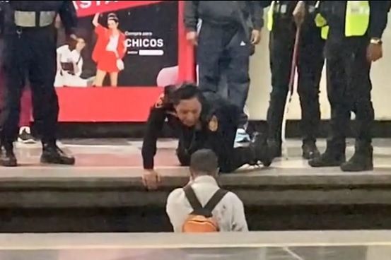 En la grabación se observa cómo el elemento escoltan al hombre hasta el final de la estación, donde subió unas escaleras. Una vez ahí, los miembros de la SSC lo acompañaron para seguir atendiéndolo.