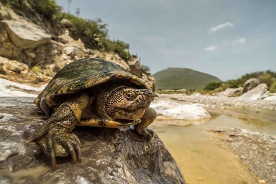 La tortuga tres lomos, es originaria de Belice, El Salvador, Guatemala, Honduras y México. Hay reportes de que en nuestro país la población se redujo en 90 por ciento, en los seis meses posteriores a que una nueva carretera permitiera el acceso a su hábitat.