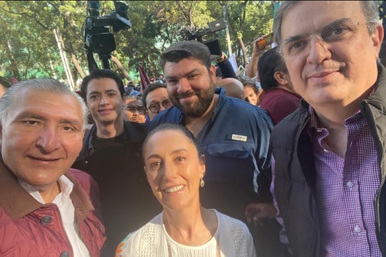 Los aspirantes a la Presidencia de la República por Morena, Claudia Sheinbaum, Marcelo Ebrard y Adán Augusto López ya de encuentran en el Ángel de la Independencia para apoyar al Presidente Andrés Manuel López Obrador.
