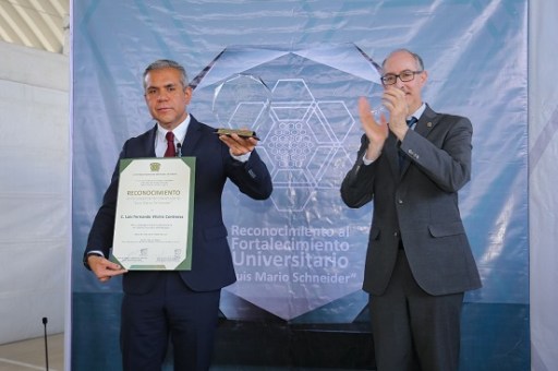 Además, acompañado de la encargada del despacho de la dirección del Centro Universitario UAEM Ecatepec, Alma Galindo Carbajal, el rector entregó el Reconocimiento al Fortalecimiento Universitario “Luis Mario Schneider” al edil de esta demarcación, en quien reconoció a un distinguido egresado de la Licenciatura en Derecho de este campus.