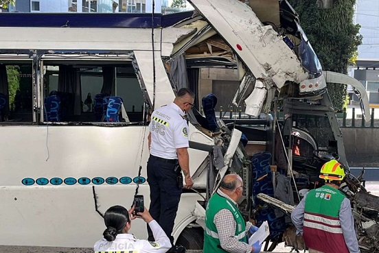 Fue la mañana de este martes cuando un autobús de turismo chocó contra un pilar del segundo piso del Periférico, lo que dejó una persona muerta y decenas de lesionados.