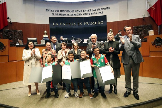 Los deportistas fueron reconocidos por su esfuerzo en esa competencia, a propuesta de la senadora Delfina Gómez Álvarez, del Grupo Parlamentario de Morena.