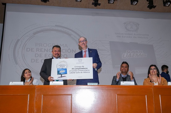 Luego de entregar a la comunidad de este campus 70 computadoras de última generación, que permitirán equipar tres de las siete salas de cómputo con que cuenta el Centro, consideró que otro elemento que demuestra la pertinencia del modelo educativo de la UAEMéx para estudios profesionales está conformado por los cinco diplomados superiores que se imparten en este campus, los cuales son muestra de que la institución permanece atenta a las necesidades del mercado laboral.