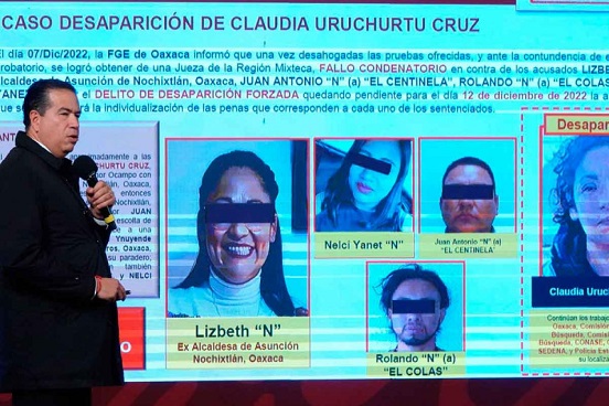 La Fiscalía de Oaxaca informó que se logró el fallo condenatorio en contra de Lizbth «N», ex alcaldesa de Asunción Nochixtlán, y de 3 personas más, por el delito de desaparición forzada de la ciudadana inglesa Claudia Uruchurtu.