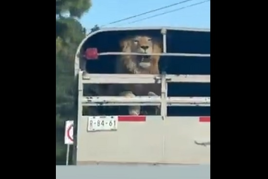 A través de redes sociales se difundió un video en el que se aprecia a un león macho en el interior de un remolque, sin embargo dentro del mismo no había una jaula.
