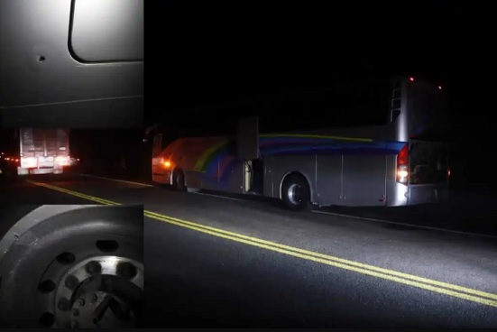 Ante la denuncia de la agresión, la organización compartió fotografías del autobús en las que se observan impactos de bala.