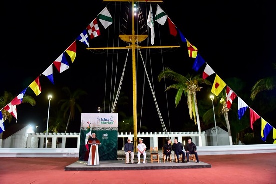 El presidente Andrés Manuel López Obrador encabezó la inauguración del Centro Turístico Islas Marías en San Blas, Nayarit, sitio dedicado al cuidado ambiental, la cultura y la remembranza de la historia del país y que se abre a visitantes nacionales y extranjeros.