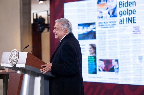 El presidente Andrés Manuel López Obrador, se burló esta mañana del periódico Reforma, ya que este señaló a través de una nota periodística, que el mandatario estadounidense Joe Bide, se encuentra analizando el “golpe” al Instituto Nacional Electoral (INE).