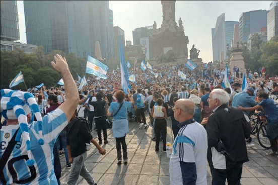 Aficionados argentinos se congregaron en el Ángel de la Independencia para celebrar el triunfo de la albiceleste en el Mundial de Qatar 2022.