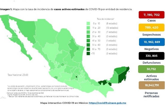 Durante la semana epidemiológica número 50, que comprendió del 11 al 17 de diciembre, el promedio diario de casos durante esos días aumentó a 2 mil 325, con una cifra de dos fallecimientos en promedio.