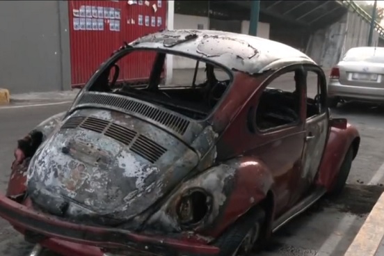 En el lugar, un vocho con al menos dos ocupantes terminó envuelto en llamas luego de impactar contra contra un muro del Tren Ligero.