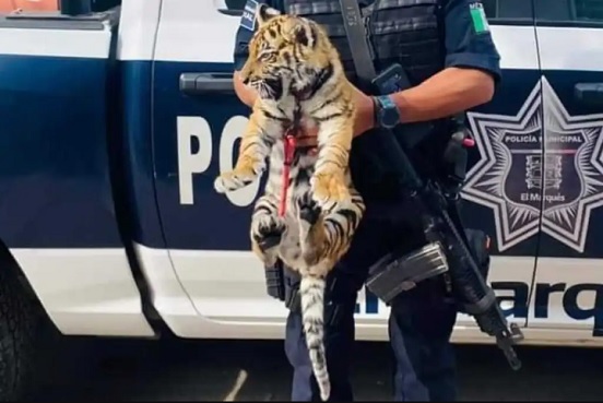 Policías municipales de Querétaro detuvieron a una pareja que transportaba armas y un cachorro de tigre en su vehículo.