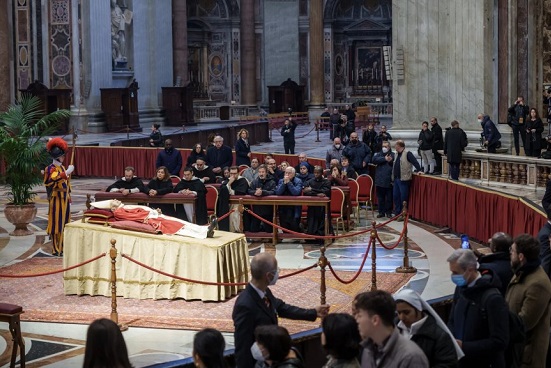 Una multitud madrugó este lunes para despedir y brindar una oración ante el cuerpo de Benedicto XVI, en la capilla ardiente instalada en la basílica de San Pedro en el Vaticano para despedir al pontífice emérito, fallecido el sábado a los 95 años.
