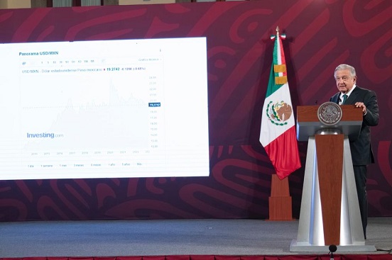 Al prever que las remesas en 2022 estarán del orden de 58 mil millones de dólares, el presidente López Obrador dijo que el peso está fuerte.