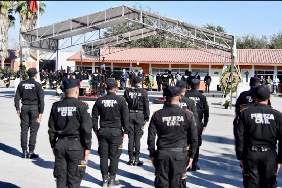 Los oficiales de Fuerza Civil caídos en cumplimiento de su deber en el enfrentamiento contra hombres armados en el municipio de Salinas Victoria, fueron homenajeados y despedidos con honores en las instalaciones del campo oficial número uno.