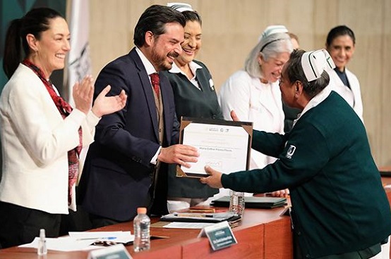 Por su parte, la jefa de Gobierno, Claudia Sheinbaum Pardo, reconoció la labor de los más de 130 mil hombres y mujeres que han dedicado su vida a esta profesión, con la entrega de reconocimientos por antigüedad al personal del IMSS.
