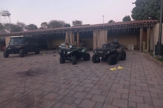 En las imágenes se aprecian dos cuatrimotos y dos camionetas Mercedes Benz y un Razer.