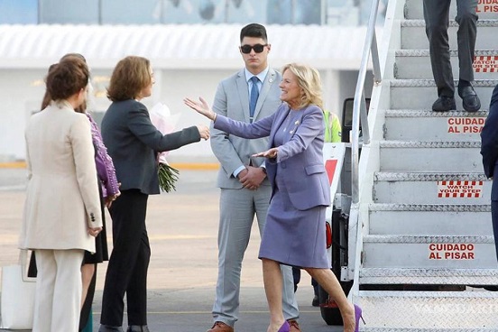 Jill Biden, esposa del presidente de Estados Unidos, Joe Biden, llegó esta tarde, poco antes de las 17:00 horas, al Aeropuerto Internacional de la Ciudad de México.