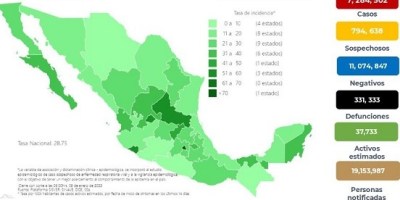 Ssa reporta 31 mil 558 nuevos casos Covid-19 y 136 defunciones en una semana