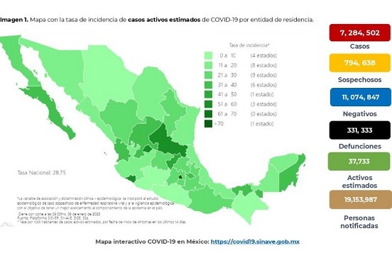 En tanto, 331 mil 333 personas han perdido la vida como consecuencia de esta enfermedad y de ellas, 136 fueron reportadas en la última semana.