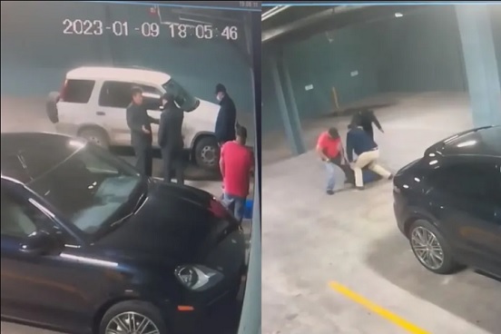 Acto seguido, el clip muestra cómo el cirujano plástico es golpeado, esposado y subido al auto. Se reporta que los agresores retuvieron a la víctima por 40 minutos, amarrado con cinta adhesiva.
