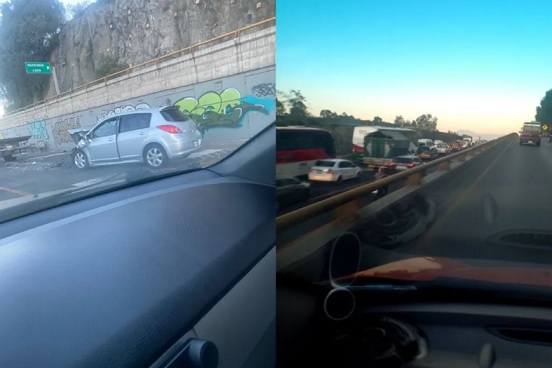 De acuerdo con los primeros reportes el choque dejó una larga fila de vehículos varados de más de tres kilómetros.