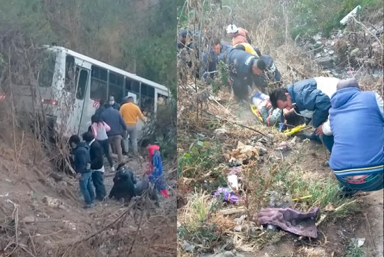 La mañana de este lunes se registró un aparatoso choque en la colonia Colinas San Mateo, entre un microbús y dos autos, de acuerdo con primeros reportes, tres personas murieron y 20 han quedado lesionadas, luego que el “micro” cayera por el barranco.