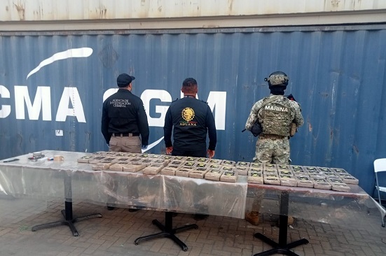 La Secretaría de Marina como Autoridad Marítima Nacional a través de la Armada de México en funciones de Guardia Costera, informa que hace unos días personal naval aseguró aproximadamente 516 (quinientos dieciséis) kilogramos de presunta cocaína en el puerto de Lázaro Cárdenas, Michoacán, derivado del trabajo conjunto entre la Unidad Naval de Protección Portuaria (UNAPROP No. 103) adscrita a la Décima Cuarta Zona Naval y la Aduana Marítima de Lázaro Cárdenas, Michoacán.