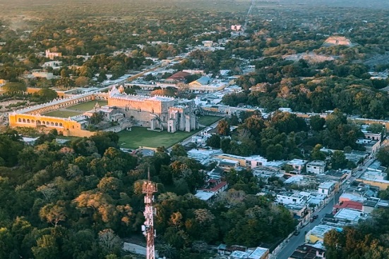 El presidente Andrés Manuel López Obrador continúa en el sureste del país supervisando la construcción del Tren Maya. Hoy sobrevoló el pueblo de Izamal en Yucatán.
