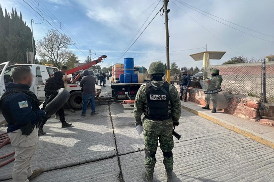 Al arribar el personal del Ejército Mexicano estableció un perímetro de seguridad, que permitió que el personal de la FEIDAI-FGEP cumplimentara una orden técnica de investigación en cada uno de los inmuebles, logrando la detención de 5 individuos, además de asegurar lo siguiente: