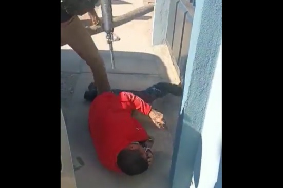 “Ora agáchese”, pide uno de los agresores al taquero que ante los golpes se tira al suelo en posición fetal.