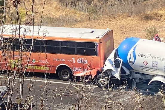 Afectaciones viales se registran debido a que una pipa de gas chocó contra un camión de pasajeros en la carretera Chamapa-Lechería a la altura del kilómetro 25 en dirección a Toluca.