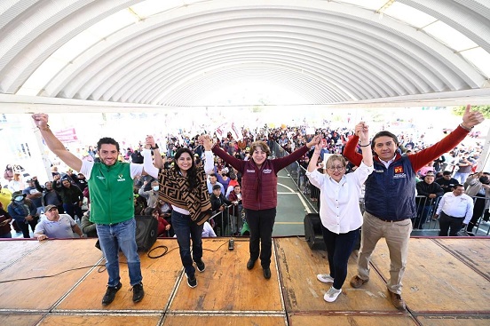 El evento, al que asistieron 3 mil militantes y simpatizantes de los tres partidos, fue realizado en la Explanada Cívica de la colonia San Isidro. Ahí, la maestra Delfina Gómez indicó que existe un contexto ideal para visibilizar los problemas de la población.
