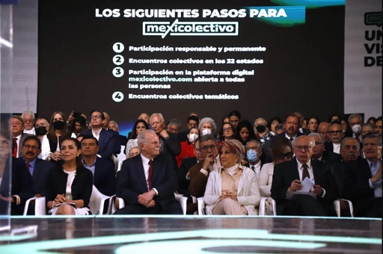 Los siguientes pasos van por organizar encuentros colectivos en los 32 estados del país, unir la plataforma digital abierta a todos, así como encuentros colectivos temáticos para la integración del documento una nueva visión de país.