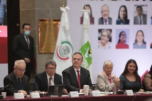 Ricardo Monreal Ávila, coordinador de la mayoría legislativa en el Senado, con las tablas políticas que lo caracterizan, recibió y dio la bienvenida al secretario de Gobernación, Adán Augusto López, al canciller Marcelo Ebrard, a la jefa de Gobierno, Claudia Sheinbaum, y al dirigente nacional de Morena, Mario Delgado, quienes participaron en la X Reunión Plenaria del Grupo Parlamentario de Morena del Senado de la República, en la Antigua Casona de Xicoténcatl.