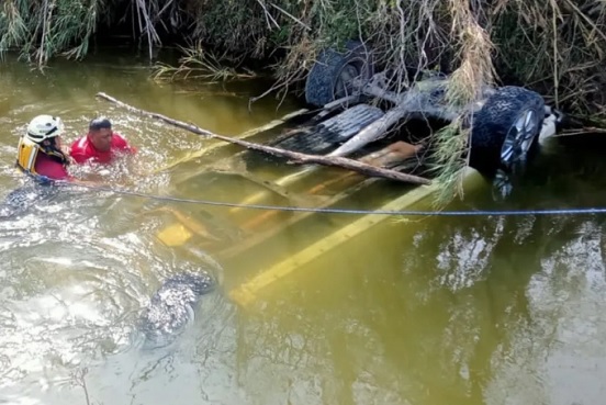 A través de una alerta anónima al 911, autoridades del municipio de Pesquería, Nuevo León atendieron la volcadura de una camioneta que había caído a un canal de riego en la carretera Pesquería-Los Ramones.