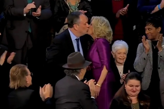 “Jill Biden, esposa de Joe, besó al esposo Kamala Harris en los labios en pleno discurso de la unión en Estados Unidos. Un adefesio de los “progres”.