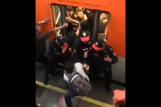 Un video que se ha convertido en viral, muestra a un grupo de supuestos vendedores ambulantes que intentan rescatar a sus compañeros quienes están siendo detenidos por elementos de la policía de la Secretaría de Seguridad Ciudadana adscrita al Sistema de Transporte Colectivo (STC) Metro.