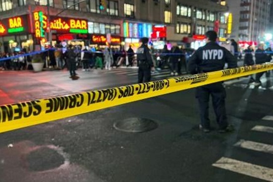 El tiroteo, afuera de un restaurante de comida rápida cerca de los grandes carteles publicitarios electrónicos iluminados y las multitudes de turistas de Times Square, provocó pánico en los peatones, informaron los medios locales.