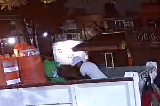 En redes sociales circula un video en el que dos hombres con uniforme de limpieza transportan una tapa de coladera en un camión recolector.