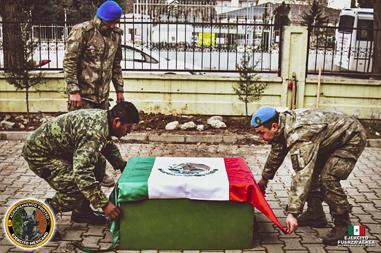 “Proteo te esperamos en casa, porque un soldado al cumplir su misión, regresa a su hogar, a nuestro #MéxicoLindoYQuerido. Tus compañeros del #EjércitoMexicano y #FuerzaAéreaMx estamos orgullosos de ti, nuestro gran #héroe”, publicó la Sedena para acompañar las imágenes en las que se cubre una caja con los restos de Proteo con la Bandera Nacional.